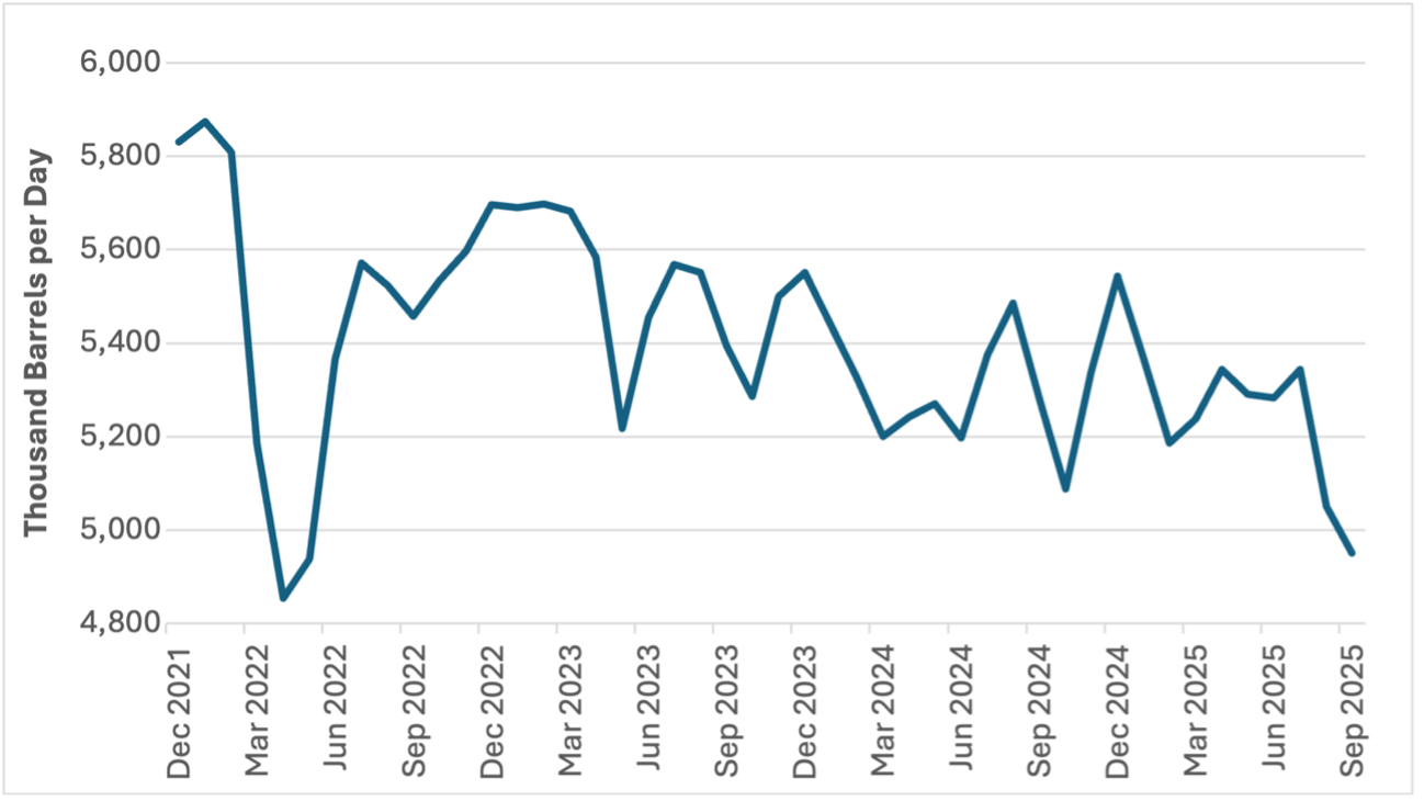 Tightening economic sanctions are increasing the difficulty for Russia to redirect crude exports toward China and India, partially offsetting lost European markets. Repeated interruptions to refining and export hubs—such as Primorsk and Ust-Luga—highlight the vulnerability of Russia’s supply chains to sustained drone activity.